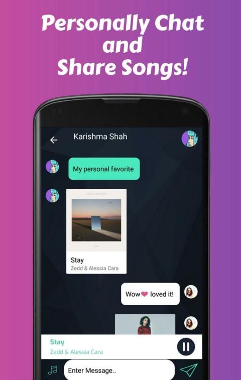 सीधे संगीत चैट फ़ीचर का उपयोग करके अपने दोस्तों के साथ गाने साझा करें ।