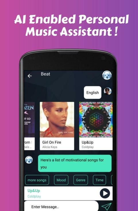 एआई ने व्यक्तिगत संगीत सहायक को सक्षम किया: बीट आपका व्यक्तिगत डीजे है। यह आपका व्यक्तिगत संगीत बॉट है जो आपको और आपके वास्तविक समय की जरूरतों को समझता है और आपको संगीत का सुझाव देता है। यह वह गतिविधि है जो आप कर रहे हैं, एक विशिष्ट शैली या आपके द्वारा की जा रही भावनाएं, बीट आपसे बात करेगा, आपको समझेगा और आपको आपकी आवश्यकताओं के लिए गाने की सूची सुझाएगा। यह वह नहीं है! इसमें अन्य फीचर्स जैसे ट्रिविया और जोक्स हैं, जो आपका मनोरंजन करते रहेंगे।