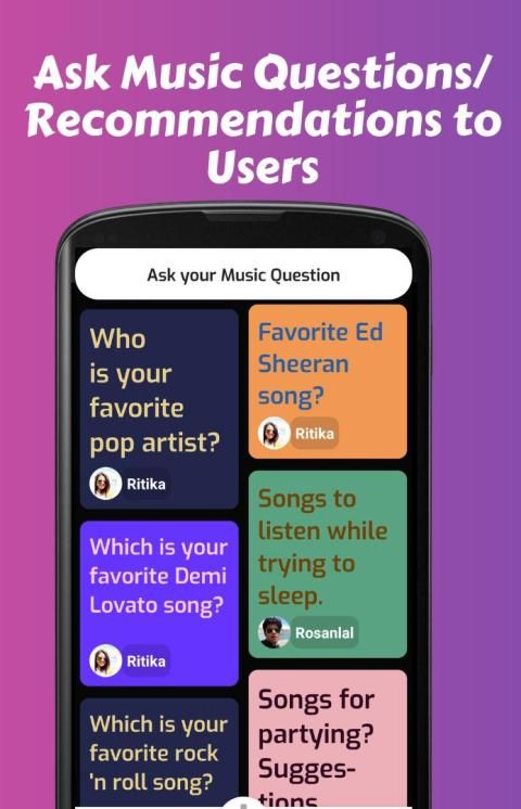 संगीत-प्रश्न और सिफारिशें पूछें, जिसका उत्तर दुनिया भर के उपयोगकर्ताओं द्वारा दिया जा सकता है।