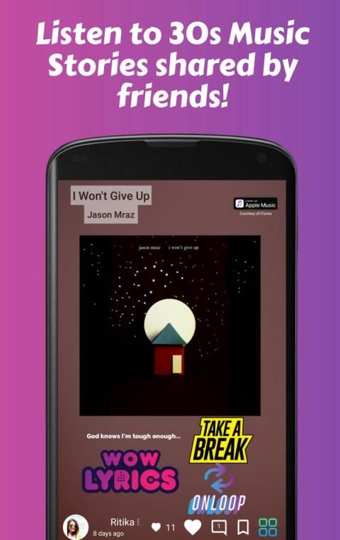 संगीत कहानियां: 45 मिलियन ट्रैकों में से एक गीत की खोज करें और दीवार पर 30s गाने की कहानियां पोस्ट करें। आप सीधे अपने संगीत स्ट्रीमिंग ऐप से एक गीत भी साझा कर सकते हैं।