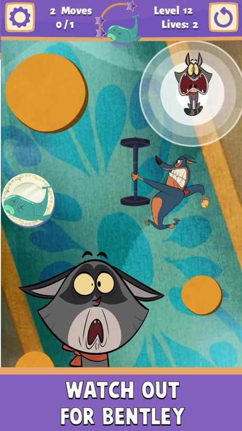 Scraggs was just a starving, trash-eating raccoon, until he conned his way into the mansion of super-rich Mrs. Muchmore… by disguising himself as a kitty cat named Taffy! Now the old lady is so enamored with the fake feline that she spoils him with ridiculous amounts of food. Everything would be perfect, if not for Bentley, Mrs. Muchmore's dog, who knows that behind Taffy's adorable eyes and sweet meows is a mangy raccoon. Bentley will stop at nothing to expose Taffy as the scavenging rodent he is, and all he has to do is deprive him of his red bowtie to get him booted out of Muchmore Manor.