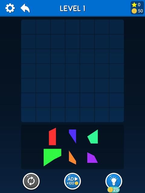 Tangram Brain Teaser Puzzles is a fun game where you must place all the shapes on the board in their correct spot. The board is a square grid shape and the puzzle pieces are all different geometric shapes that go in only one spot of the board.