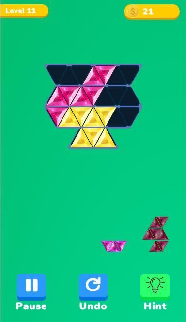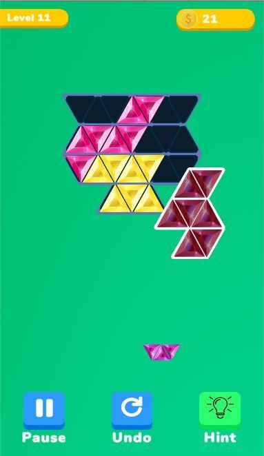 Tangram Triangle Block Puzzle is a simple and fun puzzle game.Drag and move the triangle block into the board to fill it and win the level . Tap on bricks to remove them from the board if you stuck !