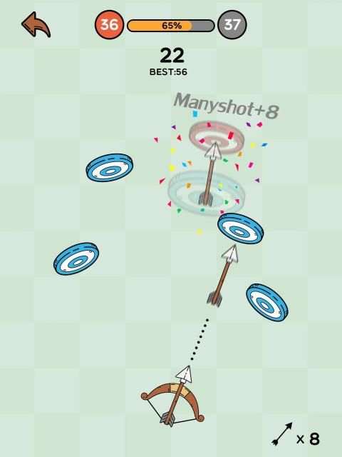 1. Operate even with one finger. Drag the bow to adjust the angle. Release to shoot arrows.