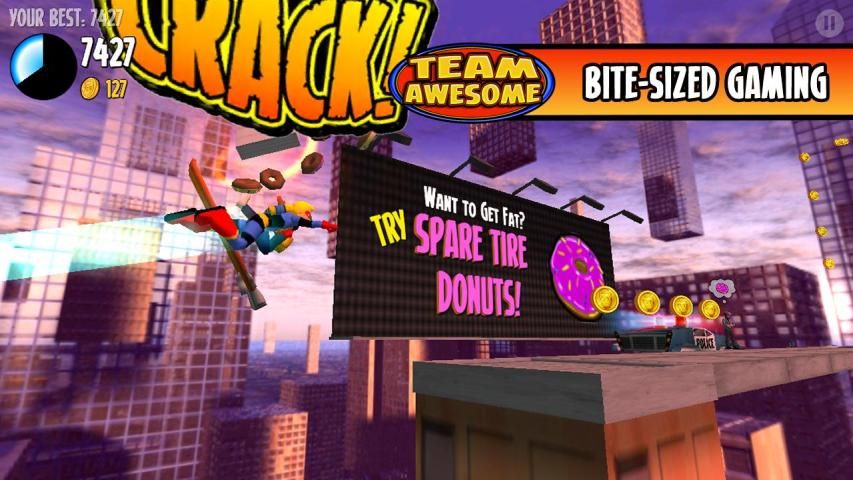 It's the game with everything: aliens, robots, explosions, cats, trains, trucks, and shiny gold coins... lots of shiny gold coins! More cats, hover cars, hover boards, fruit bowls, brick walls, wrecking balls, a crazy dentist, soccer games and coffee? Giant toxic spiders, fires, cross dressing, break dancing, pizzas, donuts, guys in giant toilets, pool toys, ufos, and even more cats!