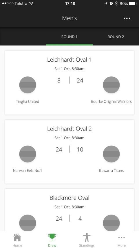 - Live draw page, easily scroll through rounds and switch competitions.