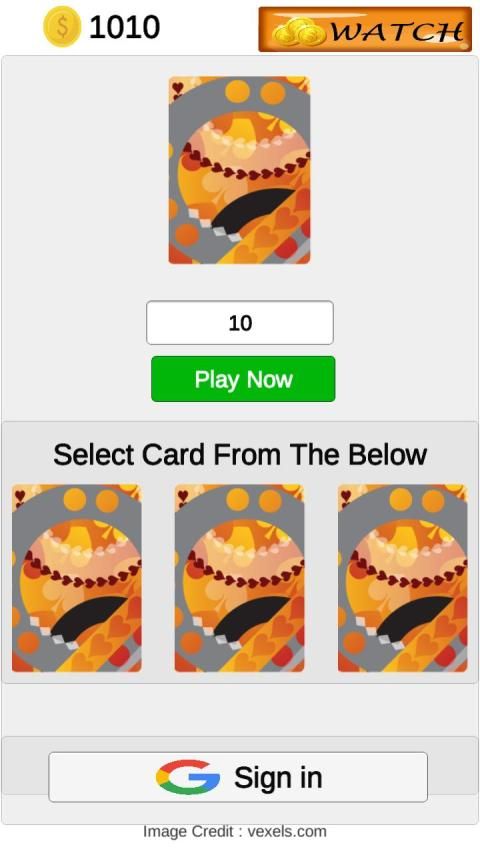 Simple Three Card Selection Game. Select A Card From Three And Earn Coin.