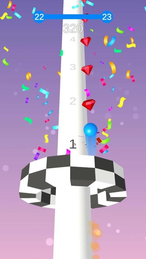 Throw your ball up through colorful platforms, but don't hit a black one.