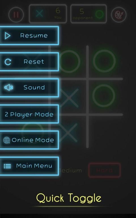 यह XOXO खेल कठिनाई, आसान, मध्यम, हार्ड के तीन मोड हैं। आप इन विकल्पों में से चुन सकते हैं।