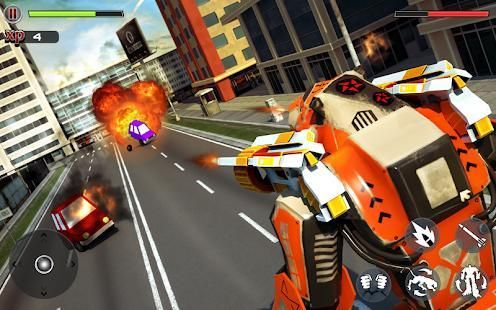 Welcome to mecha world of tiger. An experiment of science and technology goes wrong and Robo-tiger created. Tiger Transforming Robot 2018 is all about showing your inner grudge. Be a mighty robo-tiger and fight against your foes!