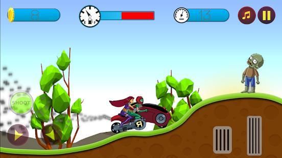 When you start the racing and adventure with titans go you can press in shoot button to kills the enemies and the zombies that appear in the road.