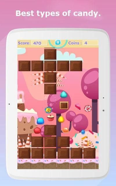 - Collect candies (sweets) to grow your score: Jelly, Cake, Cupcake, Lolipop, Egg, and Chocolate.