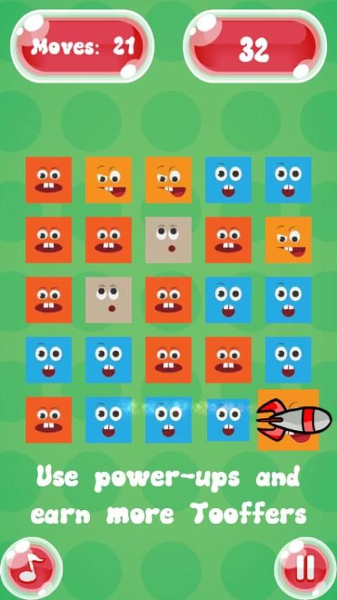 समान Tooffers कनेक्ट उन्हें बाहर पॉप और अपने स्कोर में जोड़ने के लिए। जितना अधिक आप और अधिक आप स्कोर से कनेक्ट। अपने डिवाइस वापस बैठते हैं और अपने आप को Tooffers की दुनिया में खो पकड़ो।