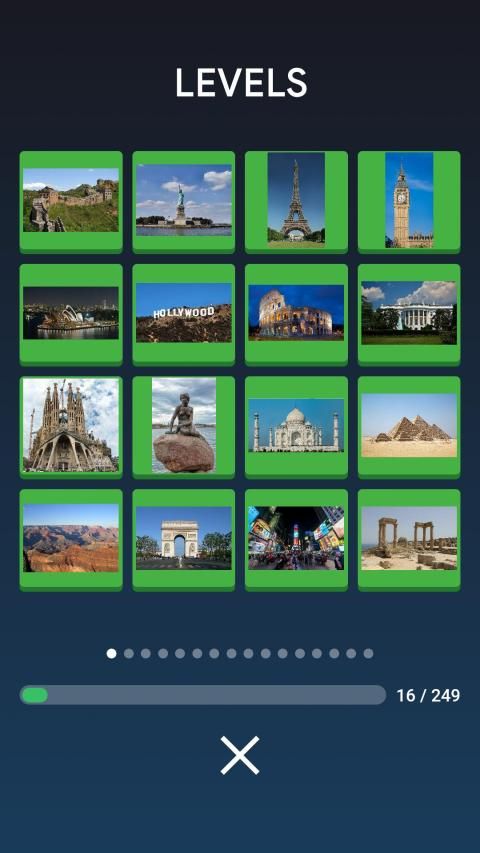 A new learning game will be interesting and useful, both for children and adults of all ages. Learn to unmistakably recognize any of the many remarkable corners of the planet. Your task is to guess in which country the photo was taken. The quiz has 250 levels, among which there are well-known sights and wonders of the world, as well as distant corners of our planet, the existence of which you could not even suspect. However, do not be afraid of difficulties. Hints will help you not get stuck at a difficult level.