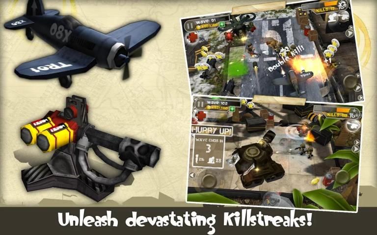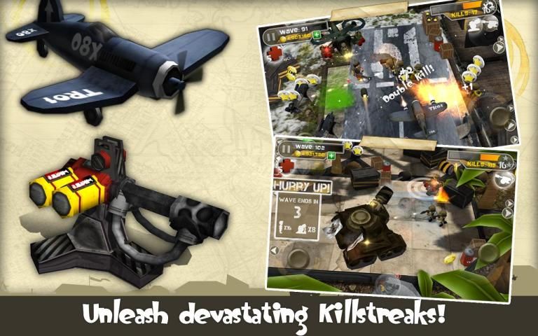 • Unlock ‘Killstreak’ rewards including artillery strikes, sentry guns and dive bombing planes