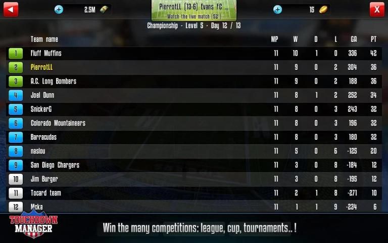 कृपया ध्यान दें कि Touchdown प्रबंधक पूरी तरह से खेलने के लिए स्वतंत्र है, लेकिन कुछ में खेल आइटम भुगतान की आवश्यकता होगी।