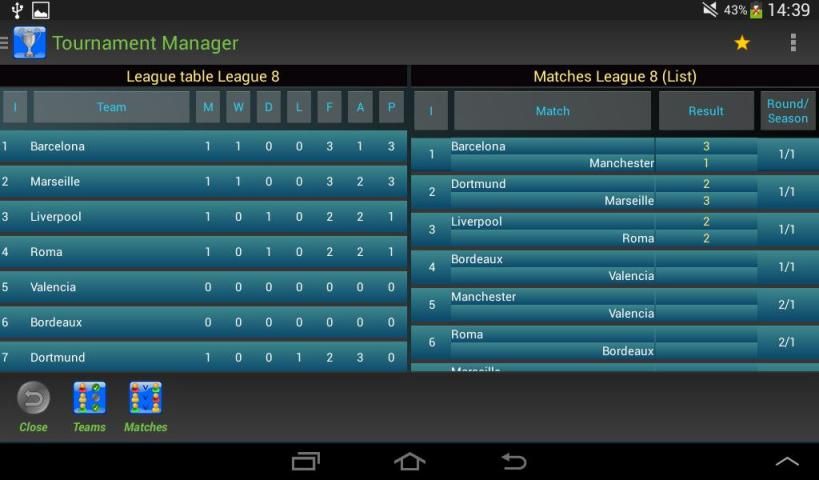 - आप लीग तालिका और चयनित खेल को सौंपा मैचों / बैठकों की सूची के लिए खेलते हैं।