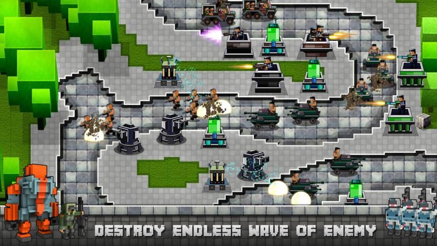 सभी दुश्मन तरंगों को नष्ट करने और नक्शे के गुरु बन जाएं! केवल एक पूर्ण विजय आप नए क्षेत्रों के लिए रास्ता खुल जाएगा। सभी नक्शे को सुरक्षित रखें और घन शिल्प शहर के पूरे क्षेत्र को जीतने के!