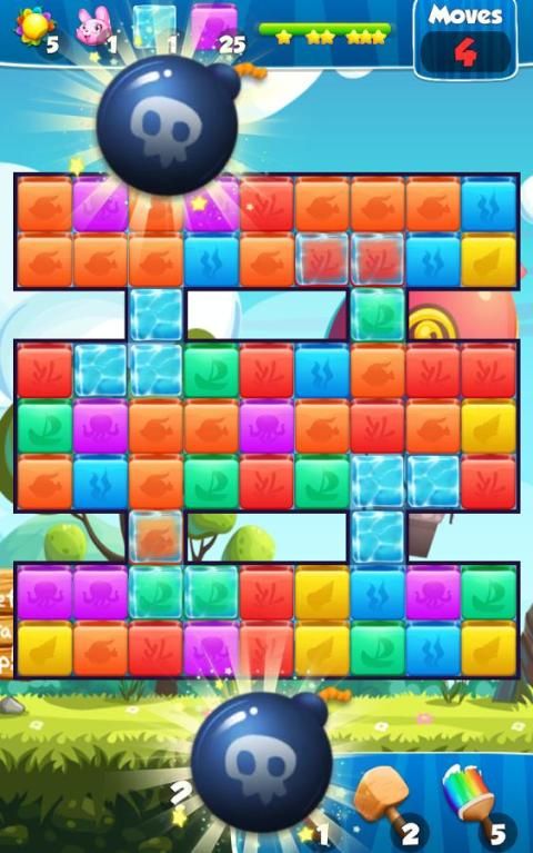 पर 5 या अधिक नल और एक मिसाइल पॉप बूस्टर कि खिलौना घनों की एक पूरी पंक्ति साफ हो जाएगा मिलता है।