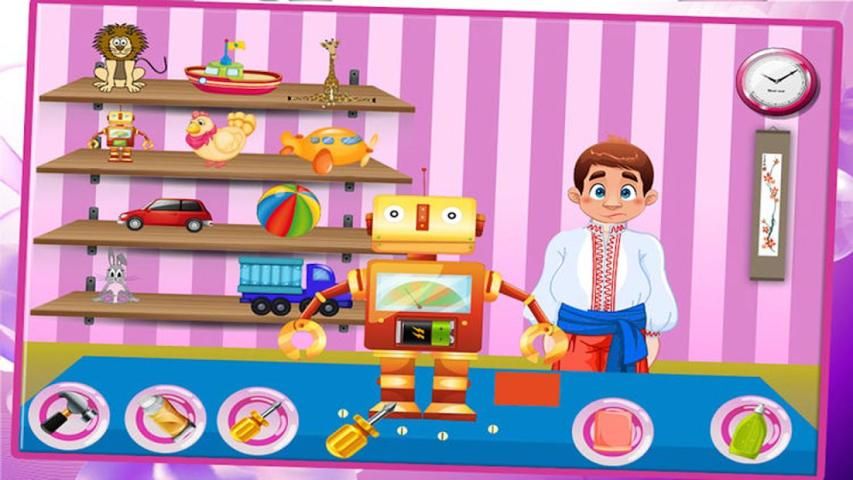 Different tools will be available for completing the jobs of refurbishing: hammer, glue, screwdriver, tracker, and colorful markers, brushes, spray and different types of needles are offered for toy repairing, The players can check the expression of the toy owner after the toy is repaired and can evaluate the quality of their repair job,