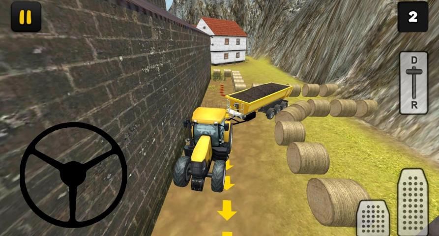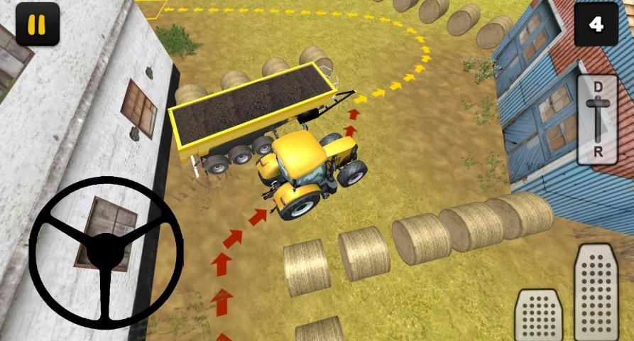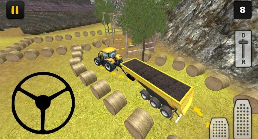 You are transporting soil with a tractor and trailer in this Soil Delivery edition of Tractor Simulator 3D. You have to deliver the soil to the customers. In 15 levels you'll face realistic situations where you have to deliver the soil. You need to drive reverse into a shed for example. To finish a level you first have to attach the trailer, to do that follow the red arrows. After you've attached the trailer, you have to park your tractor and trailer, to do that follow the yellow arrows.