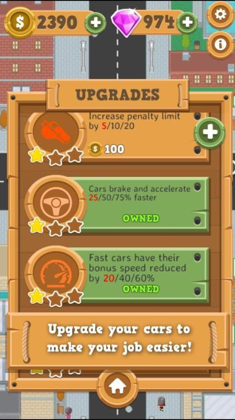 Tap the cars to freeze and unfreeze them, in order to avoid accidents and to respect several traffic laws, such as traffic lights, stop signs, give way and many more. Earn money when cars pass intersections safely, and buy new cars and upgrades to make your job easier.