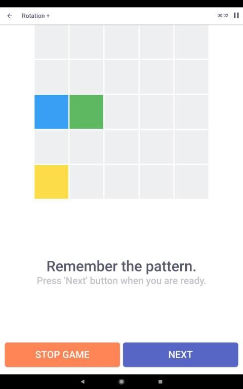 - 'Rotation+' game trains spatial thinking and helps to improve memory. In this game you should remember pattern and reproduce it after field rotation. Start with ‘1 color’ modyoue and ‘Very Easy’ level to understand exercise. Then choose more difficult level and ‘2 color’/‘3 color’ mode in order to improve memory and spatial thinking even more.