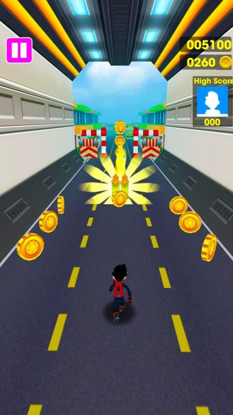 Collect Coins and Power-ups To Win In The Subway Rush Kids Game