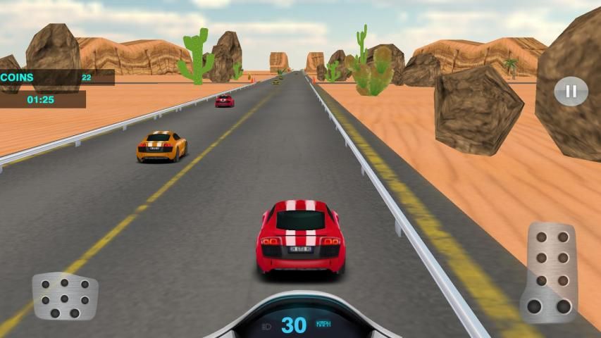 'टर्बो ट्रैफिक दौड़ने - रियल फास्ट' राजमार्ग पर एक 3 डी कार रेसिंग खेल है।
