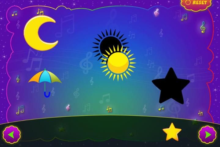 Play Puzzle and identify pictures which contains tree, moon, star, etc.