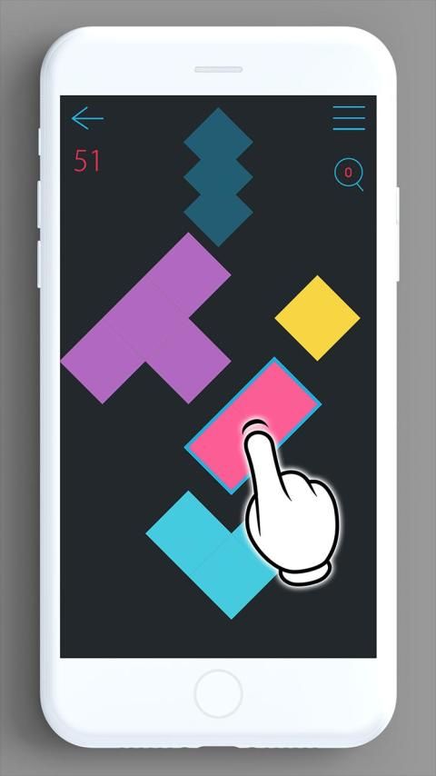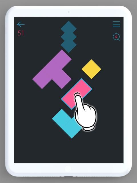 A puzzle game that uses multiple blocks to complete(assemble) the shape of a fixed figure on top.