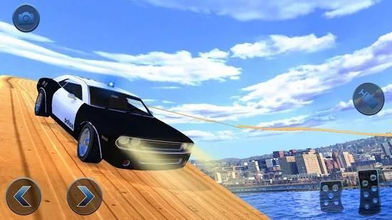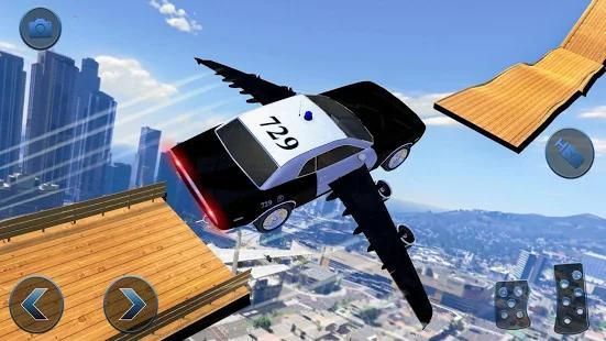 Enjoy US police flying car mega ramp on extremely difficult stunt racing tracks!
