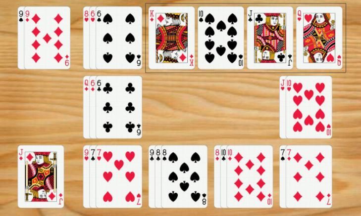 36-card deck solitaire card games. All the cards are divided into decks of 3 cards each.