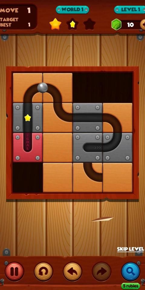 शुरुआत में, गेम के मुख्य इंटरफ़ेस में स्क्वायर टेबल, 4x4 आकार होता है, इसमें कई छोटे लकड़ी के ब्लॉक होते हैं जिन्हें स्थानांतरित किया जा सकता है और धातु के ब्लॉक को ठीक किया जा सकता है। निश्चित ब्लॉकों में से एक ब्लॉक है जिसमें गेंद को प्रारंभिक रेखा पर रखा जाता है और एक ब्लॉक लक्ष्य रेखा है, जो नारंगी है। ग्रूव के साथ नक्काशीदार लकड़ी के ब्लॉक पर, आपका काम आकृति में ब्लॉकों को एक साथ जोड़ने के लिए व्यवस्थित करना है, शुरुआत ब्लॉक से लक्ष्य ब्लॉक तक गेंद के लिए एक तार्किक मार्ग बनाता है।