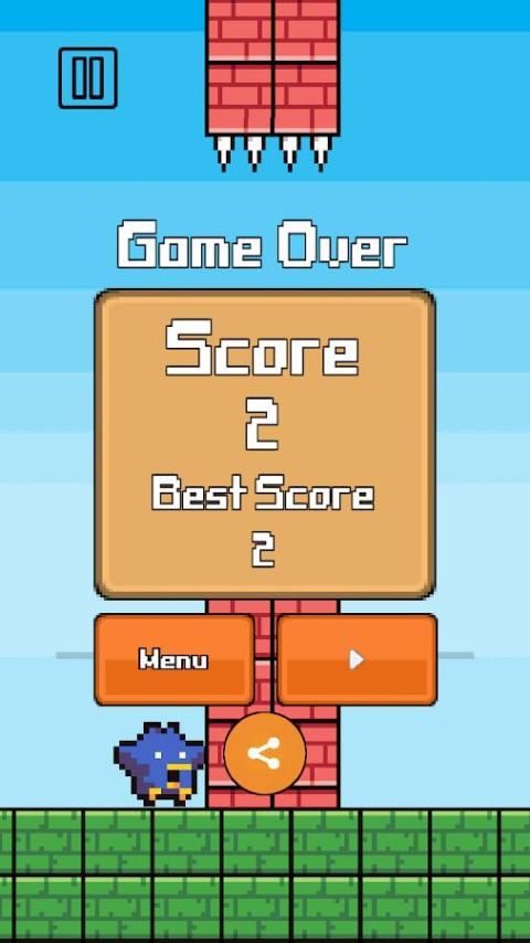 नीचे बर्ड ऊपर एक सरल अनंत साइड-स्क्रॉलिंग खेल आप एक नीले रंग की चिड़िया नियंत्रित करने के लिए जहां है। आप या तो पक्षी ऊपर या नीचे स्थानांतरित कर सकते हैं। खेल का उद्देश्य ईंट ब्लॉक और जमीन को छू से बचने के लिए है। प्रत्येक खंड आप गुजरती हैं, एक अंक अर्जित किया है।