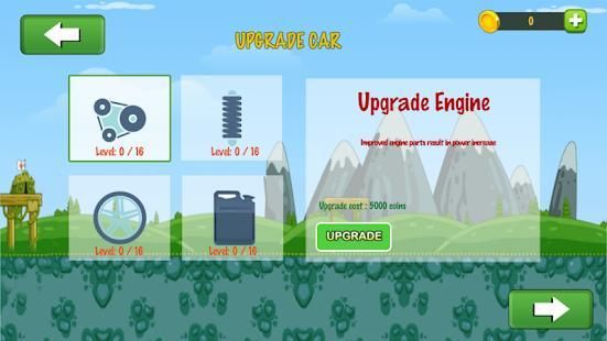 Control your car or bike to climb hills with most realistic control to face the challenges of unique uphill & downhill environments. Gain bonuses from tricks and collect coins to upgrade your car and reach even higher distances.