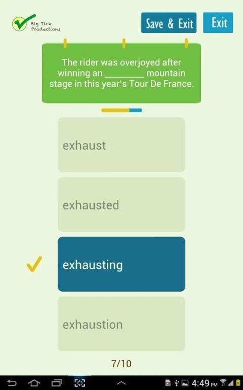 इस एप्लिकेशन को मदद करने के लिए अंग्रेजी सीखने वालों मास्टर 'एड' और 'आईएनजी' विशेषण करना है।