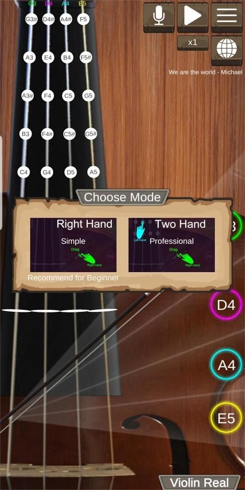 - Simple (Recommend for Beginner): Only use right hand for dragging Violin bow (Arco) or touching Violin string (Pizzicato)