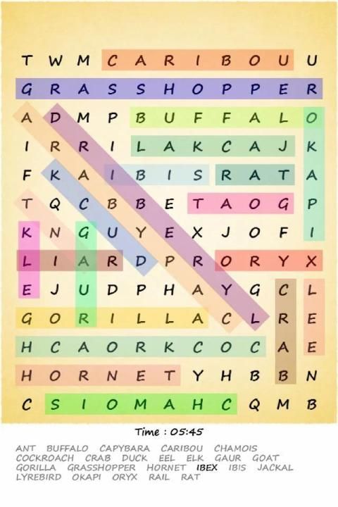 - Normal : This is unlimited time mode. You just need to find the all words listed.