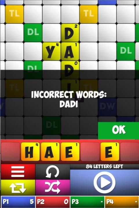 # डबल पत्र स्कोर (डीएल) - हरे रंग की कोशिकाओं में पाए जाते हैं बोर्ड पर अलग। एक टाइल इस स्थान पर रखा गया है, जब कि टाइल की बात मूल्य दो से गुणा किया जाता है।