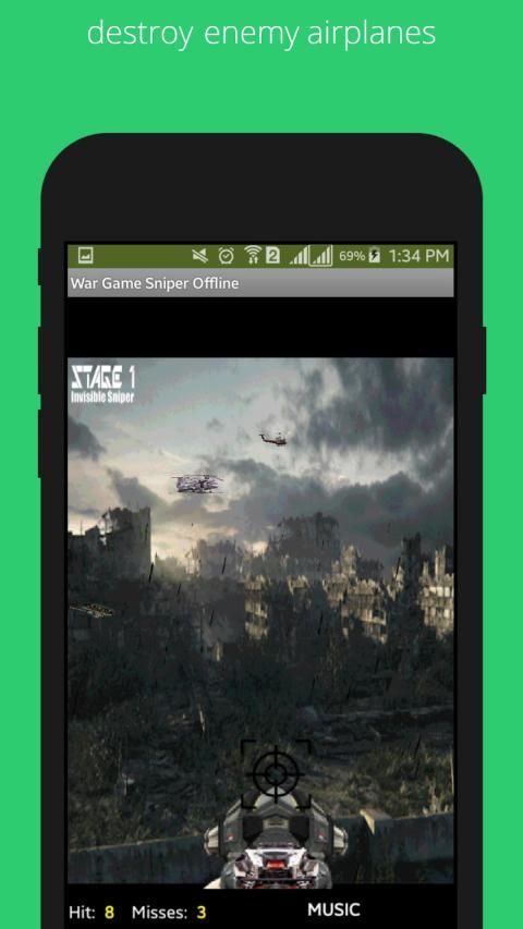 आप एक स्नाइपर बॉम्बर के रूप में सेवा करते हैं, जो दुश्मन के हवाई जहाज को नष्ट करने के लिए तैयार है जो आपके क्षेत्र में हमला कर रहे हैं। वास्तव में मज़ा एक इंटरनेट कनेक्शन के बिना खेला जा सकता है। घर पर खेलना और हैंड्सफ्री का इस्तेमाल करना बेहतर है। दुश्मन के सभी हवाई जहाज को नष्ट कर दें। और अपने क्षेत्र में दुश्मन सेना को साफ करें।