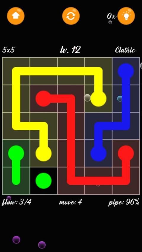 एक प्रवाह पैदा करने के पाइप के साथ मिलान रंग कनेक्ट करें। सभी रंगों जोड़ी, और जल कनेक्ट में प्रत्येक पहेली को हल करने के लिए पूरे बोर्ड को कवर किया। लेकिन बाहर देखो, अगर वे पार पाइप तोड़ने या ओवरलैप जाएगा!