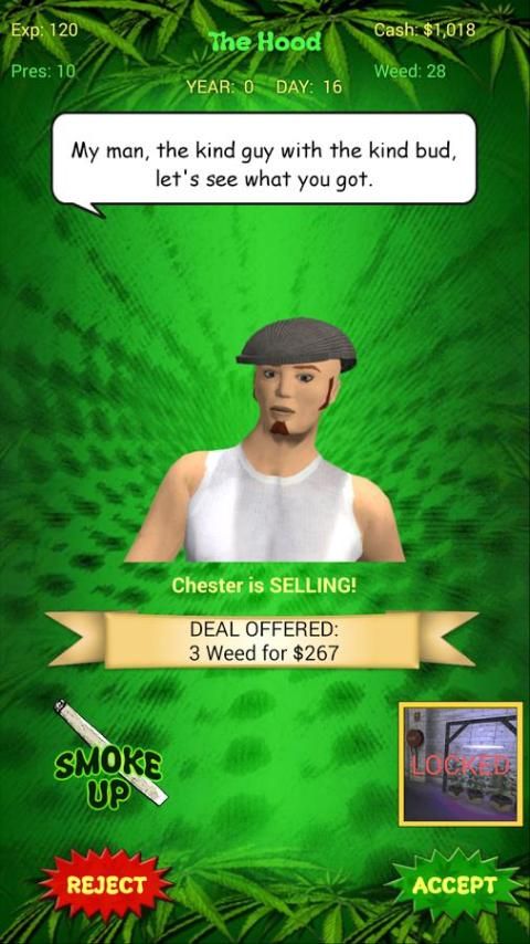 तुम एक खुश खरपतवार किसान, एक कारण के साथ एक शांत विद्रोही थे। राष्ट्रव्यापी मारिजुआना वैधीकरण के बाद, बदमाशों के सभी प्रकार के उद्योग में प्रवेश के लिए और अपने व्यापार चोरी शुरू करते हैं। तुम खेत से दूर पाने के लिए और हर सौदे के साथ अनुभव और प्रतिष्ठा पाने से ऊपर डीलर बनने के लिए सड़कों पर मारा है।