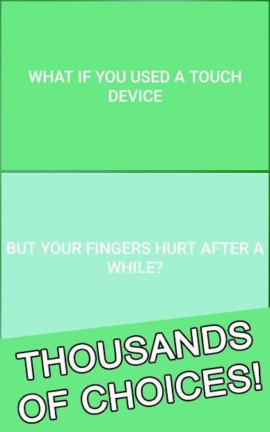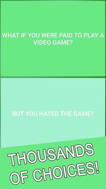 किशोरों के लिए क्या होगा! किसी भी अवसर और सभी उम्र के लिए एक मजेदार और addicting खेल है। इसमें बहुत सारा सुनिश्चित करने के लिए सैकड़ों (नियमित रूप से अधिक प्रश्न जोड़े गए हैं) शामिल हैं!