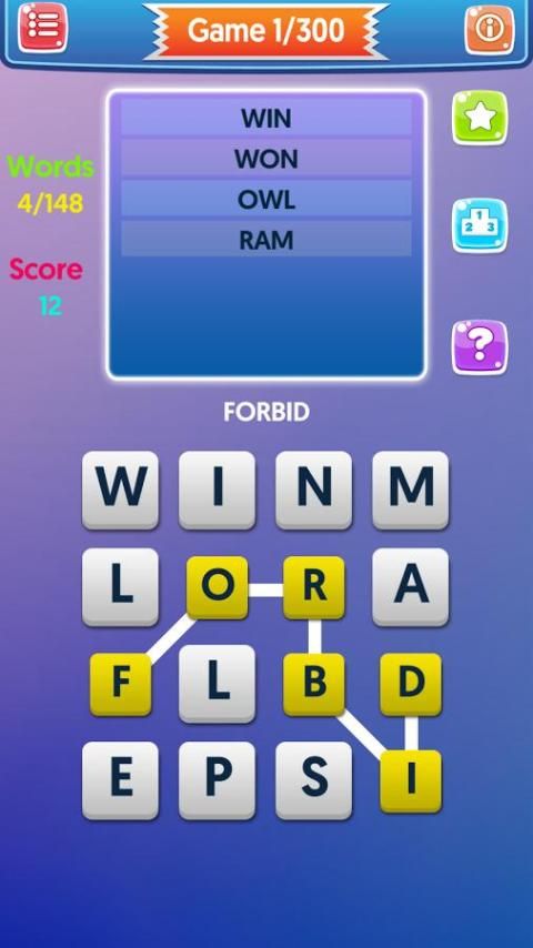 स्पष्ट टाइल्स को पत्र कनेक्ट करें! विशेष बोनस टाइल्स के लिए लंबे समय तक शब्द बनाने या अधिक शब्दों के माध्यम से हाथापाई और अपने मित्रों को शीर्ष स्कोर सीढ़ी पर करने के लिए पाँच रोमांचक शक्ति अप में से किसी का उपयोग करें!