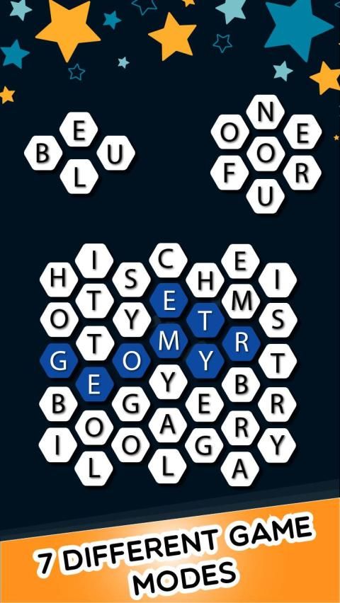 of hexagonal letters. The game is designed for all word puzzle game lovers.