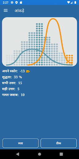 समग्र स्कोर, सटीकता, सही और गलत उत्तरों की गिनती।