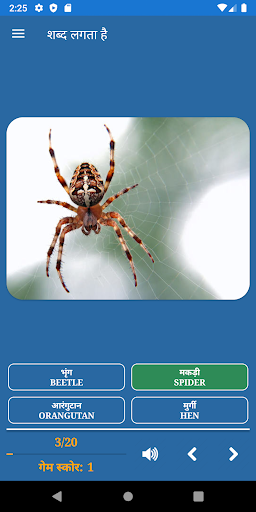 आप ऑडियो आइकन टैप करके जवाब देने के बाद शब्द उच्चारण सुन सकते हैं।