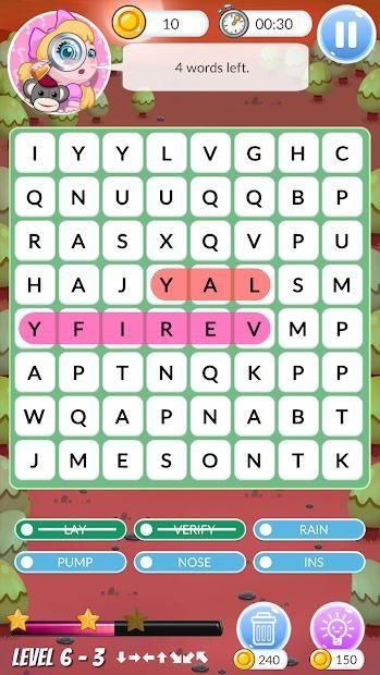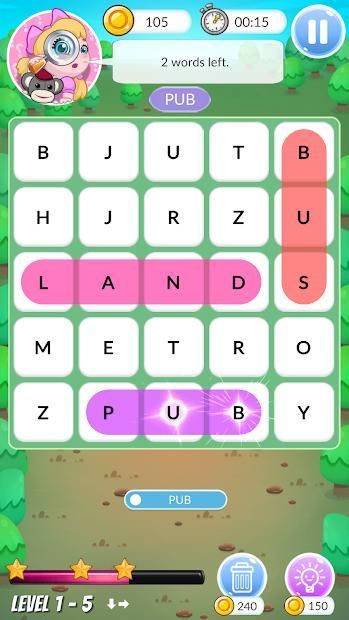 400 से अधिक स्तरों और 5000 शब्दों के साथ शब्द खोज खेल।