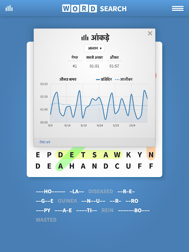 हमारा क्लासिक शब्द खोज गेम आपके अपूर्ण गेम को भी सहेजता है जिससे आप जब कभी आप चाहें तो वापस आकर उन्हें पूरा कर सकें!
